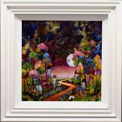 Enchanted Forest by Roz Bell is an original artwork, finished with a resin glaze and presented in the artist frame. The artwork is signed by the artist and comes with biography. The frame on this artwork is the large white frame with an inner white frame.