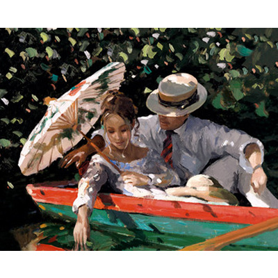 Romance On The River by Sherree Valentine Daines. The figurative art is presented as canvas on board, with hand embellishment, numbered and signed by the artist. Framed artwork is available – Please contact the Gallery.