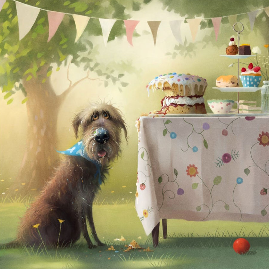 Afternoon Tea | A limited edition artwork from the well loved naughty dog collection by Stephen Hanson. Produced with high quality archival inks and paper which is embossed, signed, titled and numbered. All artwork only orders come single mounted, backed and cellophane wrapped, ready to drop into a frame.
