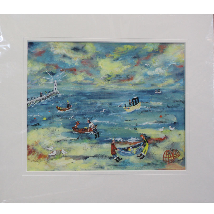 Something Fishy | A signed limited edition art print by artist Therese James. Presented on paper, conservation mounted framed in a 55 Taupe as standard. All signed, numbered and comes with a Certificate of Authenticity. Free UK Mainland Delivery.